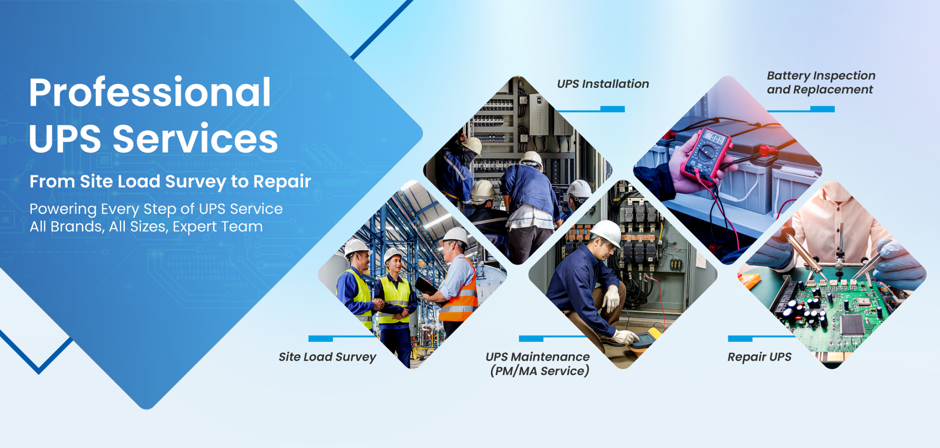 We offer battery replacement services for all UPS models and brands, from 500VA to 1200KVA. All batteries come with a 2-year warranty. We provide both pickup and on-site replacement services, including battery testing, all handled by our expert engineers.